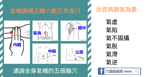 治百病調氣為要,通調全身氣機的5個腧穴(五臟六腑)